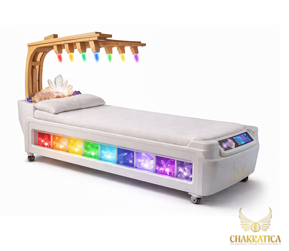 Each chakra bed blends nature and advanced technology, combining high-resonance natural stones with systems enhanced by quantum frequency cycles.
